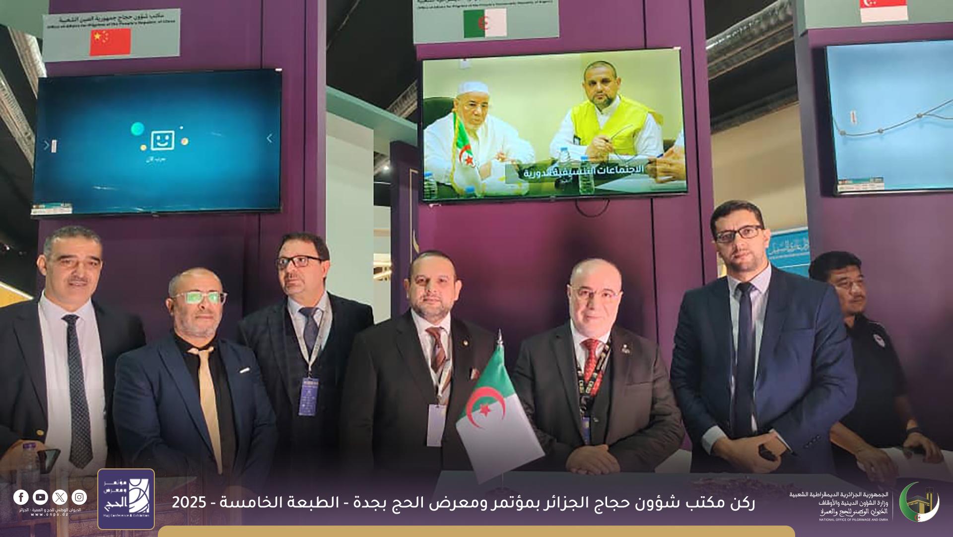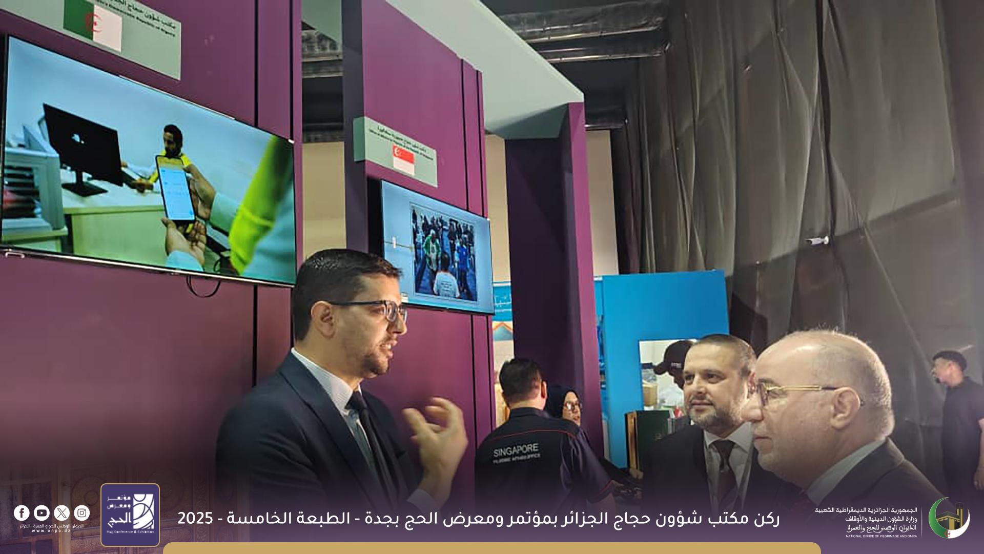 قام اليوم وفد مكتب شؤون حجاج الجزائر برئاسة السيد وزير الشؤون الدينية والأوقاف الدكتور يوسف بلمهدي رئيس مكتب شؤون حجاج الجزائر مرفوقا بالسيد المدير العام للديوان الوطني للحج والعمرة البروفيسور الطاهر برايك مدير مكتب شؤون حجاج الجزائر بزيارة جناح الجزائر في مؤتمر ومعرض الحج 1447 هـ، وهو واحد من بين الأجنحة المخصصة للدول الحائزة على جائزة التميز للموسم الماضي 1446هـ حيث فازت الجزائر بالجائزة الذهبية لبيتم، وقد التقى السيد الوزير بإطارات الديوان بالجناح، وتلقى شروحا وافية عن مشاركة الجزائر والمواد المعروضة للزوار، في سبيل التعريف بالدور الذي يقوم به مكتب شؤون حجاج الجزائر.