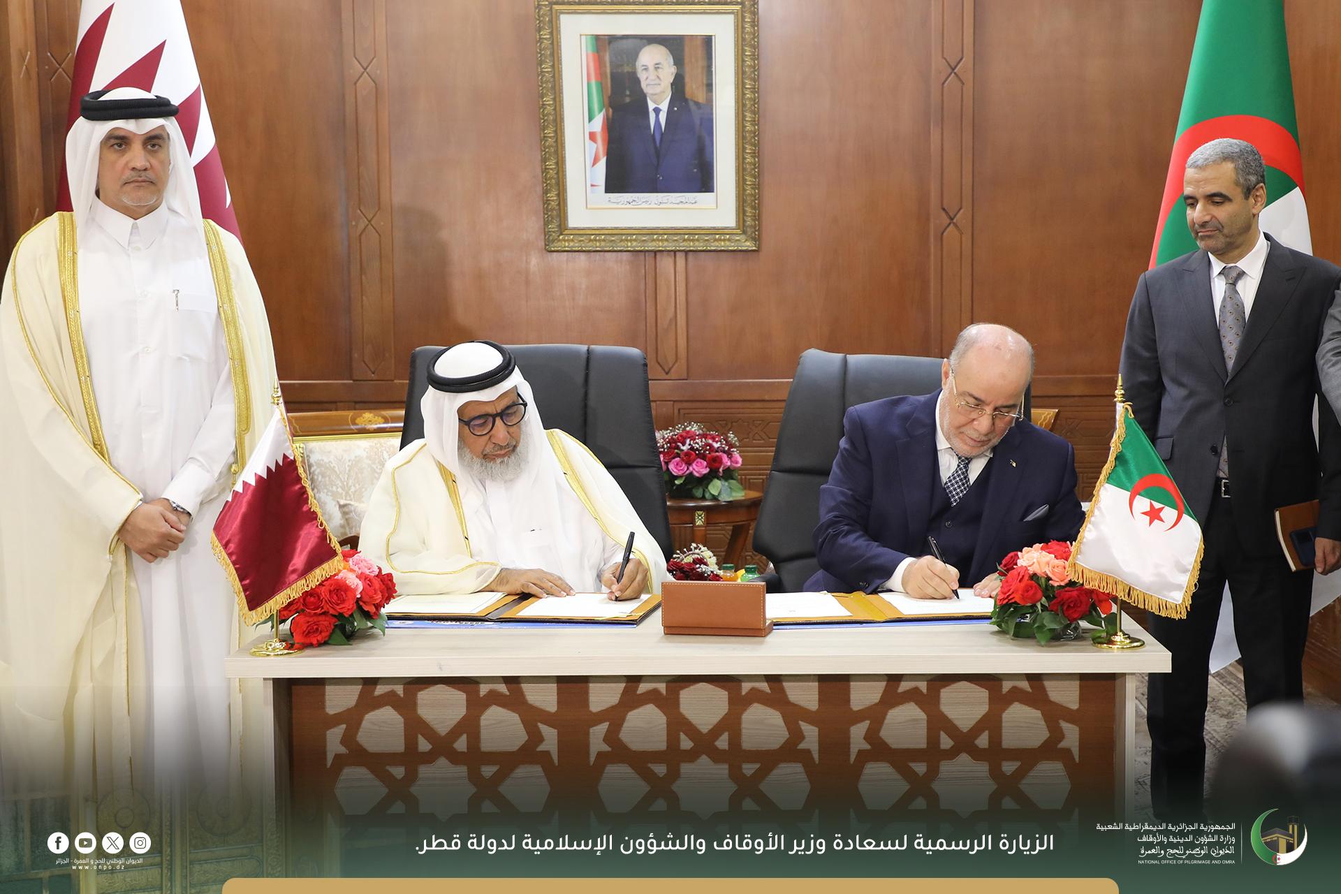 – وقد تُوِّجت هذه الزيارة بالتوقيع على البرنامج التنفيذي لاتفاق التعاون في مجال الأوقاف والشؤون الإسلامية بين الجمهورية الجزائرية الديمقراطية الشعبية ودولة قطر.
