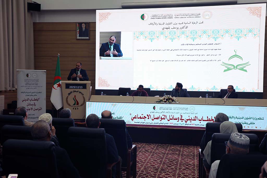 بدعوة من السيد وزير الشؤون الدينية والأوقاف الدكتور يوسف بلمهدي شارك صباح اليوم الإثنين 24 جمادى الثانية 1447 هـ الموافق 15 ديسمبر 2025م بالنادي الوطني للجيش_ بني مسوس الجزائر العاصمة السيد المدير العام للديوان الوطني للحج والعمرة البروفيسور الطاهر برايك في افتتاح الملتقى الوطني الموسوم “الخطاب الديني في وسائل التواصل الاجتماعي”، تحت شعار “الكلمة مسؤولية والتأثير رسالة” وذلك بحضور السيد الأمين العام للوزارة وإطارات من الإدارة المركزية والمؤسسات تحت الوصاية.