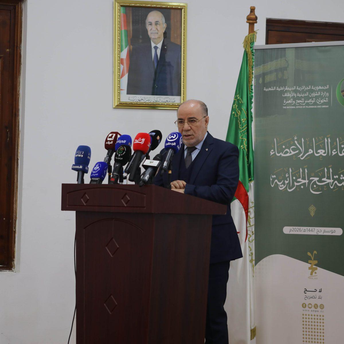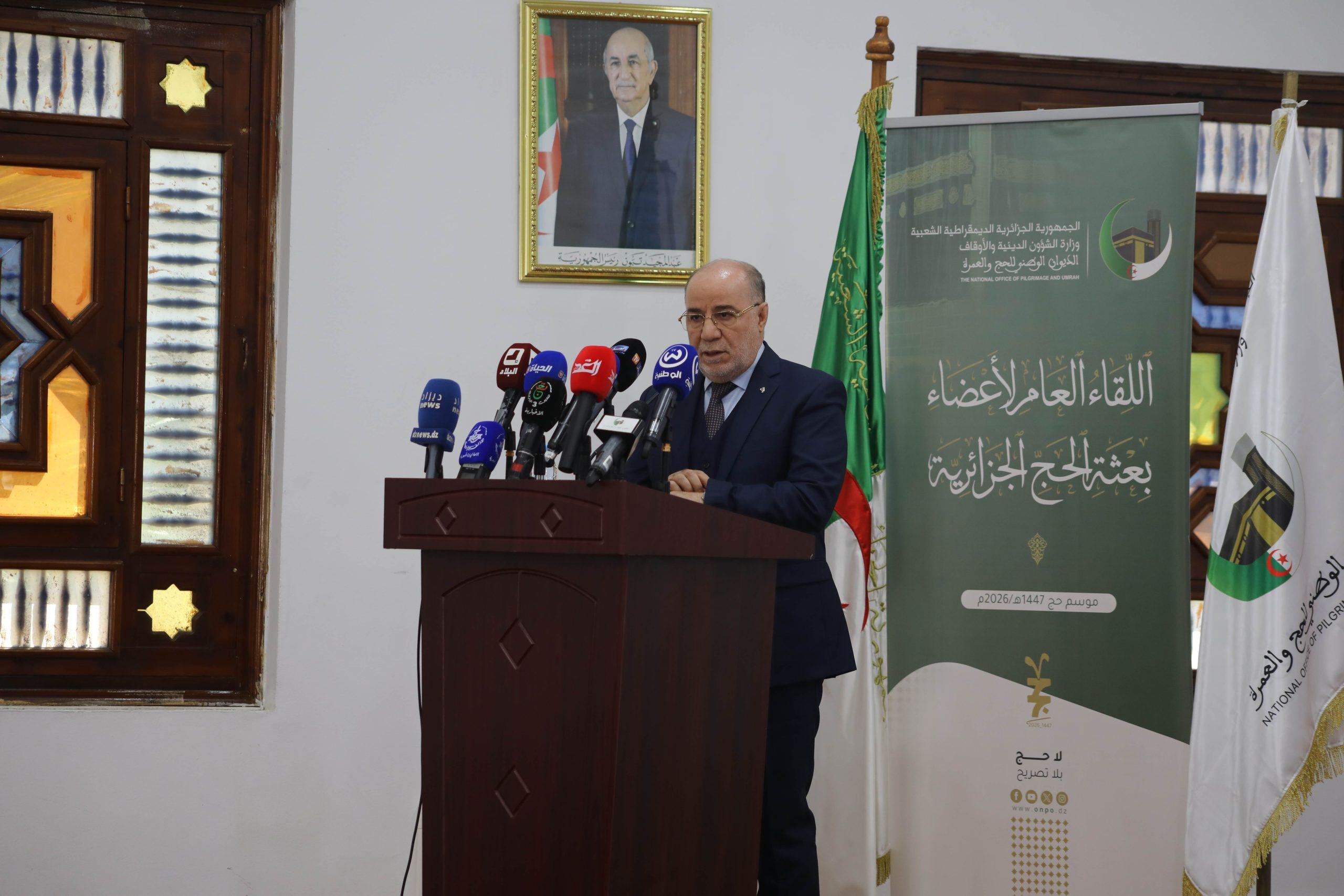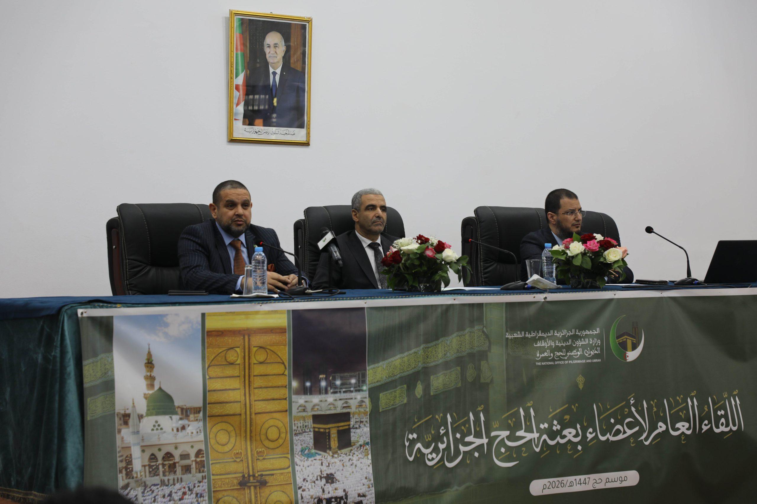 في إطار التحضيرات الجارية لموسم الحج 1447هـ، أشرف السيد وزير الشؤون الدينية والأوقاف، الدكتور يوسف بلمهدي، رئيس مكتب شؤون حجاج الجزائر، اليوم الإثنين 2 ذو القعدة 1447هـ الموافق لـ 20 أفريل 2026م، على اللقاء العام لأعضاء بعثة الحج الجزائرية.